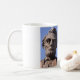Uma caneca com uma foto de um monumento de Abe Lincoln em Wyoming.