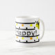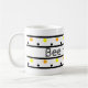 Bee Happy é escrita em fonte divertida. Um sorridente borrão preto, pintado à mão, com asas flamejantes, está zunindo para dizer oi. Formas geométricas coloridas com faixas pretas e bolinhas amarelas cor de laranja sobre fundo branco. Mágicas brilhantes e alegres. Design de arte original © TamiraZDesign. www.zazzle.com/tamirazdesigns