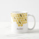 Uma caneca de café com ilustração de uma abelha em favos de mel e textos personalizáveis amarelos e castanhos: perfeita para fazer um presente a um apicultor, amante de abelhas ou namorada que ama a natureza.