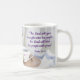 Um vaso de lilás, óculos, livro e uma xícara de chá, uma imagem calmante com palavras da Bíblia "O Senhor dará força às suas pessoas; o Senhor abençoará suas pessoas com paz" Personalize a caneca com texto de sua escolha, e é fácil mudar a imagem também se você quiser.