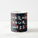 Uma espiral caótica de escrivores coloridos forma um padrão circular. O centro apresenta as palavras "Embrace Your Mess" em azul claro.