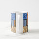 Elevem sua experiência de mergulho com esta linda caneca adornada em um padrão de Deco de Arte abstrato. Traços radiantes de ouro dançam perfeitamente com azuis profundos e brancos nítidos, criando uma fusão cativante de elegância e modernidade. O intricado design, que lembra a era do eterno Art Deco.