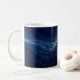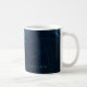 Esta caneca apresenta um design azul-escuro abstrato com linhas brilhantes e partículas de poeira. Personalize-o com o seu nome na parte inferior.