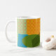 Esta caneca tem um design moderno do século médio de um retângulo, um oval e um paralelograma com círculo vazio e linhas paralelas sobrepostas. Quer cores diferentes? Me mande mensagem.
