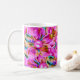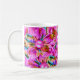 Semeada feita à mão, rosa, púrpura, flores de tecido com pérolas rosa no meio da flor na caneca. *Todas as coisas que você vê nos produtos são feitas à mão, mas você deve saber que você consegue uma foto!