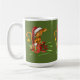Um gato de Natal sentado numa pilha de presentes na sua caneca de bebida quente. Faz um presente excelente também.
