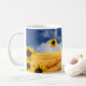 Caneca De Café Aguarde a Ucrânia em amarelo e azul com girassóis