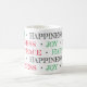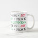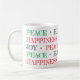 Um design de Natal com as palavras "Alegria Felicidade da Paz" em vermelho, verde e preto.