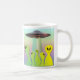 Leva-nos ao teu...máquina de café! Visitantes amigáveis de alienígenas vêm tomar café com você. Esta caneca de café giro daria um presente de excelente para os colegas de trabalho. E você pode adicionar seu próprio texto com a ferramenta design.
