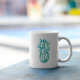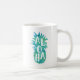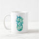 A caneca de verão apresenta a saudação havaiana "aloha" em letras brancas manuscritas, inscritas como dentro a ilustração do abacaxi tropical em aquarelas brezy turquoise.