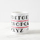 Alphabet mug for teachers with the alphabet and ending in "tell me what you think of me!"