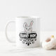 Uma caneca de café bonita para amantes de coelhos com um belo coelho branco de desenho animado com a legenda "Mãe Coelhinha"