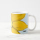 Fecho da flor amarela bonito pintada à mão com sotaques de pratos de prato com centro amarelo e sotaque preto. O amor é escrito em um roteiro preto em torno da caneca azul clara. Bonito caneca de verão para iluminar o dia de alguém. Trabalho de arte de Gráfico Original por TamiraZDesign. www.zazzle.com/tamirazdesigns