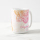 The Amaya Mandala15 oz. Personalized Mug in rose and honey adds a touch of mindfulness to your morning routine, or any time you need that sustaining cup of coffee, tea, or hot chocolate. This extra-large size is especially cosy to wrap your hands around. Would also make a thoughtful gift for your favorite yoga teacher. Available in an 11 oz. version as well.