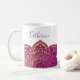 Featuring a richly-colored mandala in magenta and golden yellow, this personalized mug makes a unique and thoughtful gift.