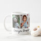 Uma linda caneca de dia de os pais personalizada com 5 fotos, te amo tipografia do vovô e nomes de netos.