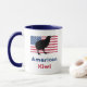 Esta caneca de café legal do estilo do vintage caracteriza a bandeira dos E.U. com uma silhueta preta do quivi sobre ela. Um grande presente para algum quivi que vive em América! Também disponível em vidros de cerveja do fosco, em canecas de viagem, e em outros estilos da caneca.