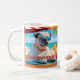 Mug apresentando uma colagem de dois cachorros bebendo uma bebida em uma praia de verão ensolarada. Um presente de excelente para um amigo que ama o cão.