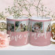 Colagem de fotos cor-de-rosa 5, coração e sua assinatura... amamos sua mãe, escrita manual, tipografia, Dia de as mães personalizado, caneca de café rosa. Um presente perfeito para a mãe, a avó, a irmã ou a mãe em direito.