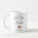 Esta caneca simples e na moda diz "Ame-te Mãe" na moda, escrita à mão, escrita a preto, com uma aparência falsa de rosa e um lugar para o nome do seu filho.
