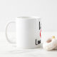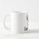 caneca a utilizar quando estiver sentado e a tricotar Loom. "Love 2 Loom Knit" letras grandes, pretas e vermelhas, com coração e número 2