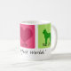 Amor Malinois da paz. Três silhuetas do amante do cão em seguido, uma paz assinam dentro brandamente o azul, um coração vermelho do amor e um esboço belga de Malinois no verde com as palavras o mundo perfeito.