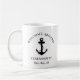 Uma caneca moderna náutica para o seu barco que tem uma âncora preta. Você pode personalizar o texto "Bem-vindo a Bordo" e o nome e a localização do seu barco em tipografia e roteiro elegantes.