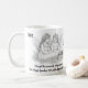 Anjo número 222, caneca de alinhamento com citação inspiradora. O desenho mostra dois anjos sentados em um jardim. O desenho é um desenho de lápis macio de dois anjos. A citação diz: "Envolva os momentos, alinhe sua alma, Deixe o universo guiar, e faça você inteiro. Para Angel Number 22, com alinhamento à vista, nos leva a um mundo onde o amor brilha brilhante."