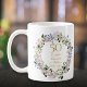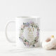 Com uma delicada grinalda floral de lavanda em aquarela, esta caneca elegante de aniversário de 50 anos de casamento pode ser personalizada com as suas informações especiais de aniversário de ouro em tipografia dourada elegante. Desenhada por Thisisnotme©