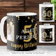 Celebre qualquer aniversário com uma caneca comemorativa de manutenção com duas fotos e seu texto personalizado sobre a idade e embaixo (a amostra mostra AGED TO PERFECTION e HELY BIRTHDAY NAME) acentuado com estrelas douradas sobre um fundo preto editável. ALTERAÇÕES: faça alterações no estilo da fonte do texto, na cor e na cor do plano de fundo na EDIT. ASSISTÊNCIA: Para obter ajuda sobre modificação de design, personalização, alteração de cor ou transferência do design para outro produto, entre em contato com o designer ANTES DE ENCOMENDAR por meio do Zazzle Chat ou makeitaboutyoustore@gmail.com.