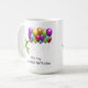 Uma linda caneca de aniversário de um salto com a imagem de um sapo saltante e balões muito coloridos. PERSONALIZÁVEL....color, cores de texto. Escolha dentre várias canecas de tamanho. Se precisar de ajuda para personalizar, entre em contato comigo.