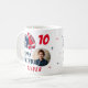 Foto do Cartoon de Capacetes de Futebol, Aniversário Coffee Mug. Caneca de aniversário divertida e moderna. Apresentando uma ilustração ousada de um futebol e capacete em vermelho e azul. Adicione sua foto, nome e idade.