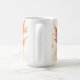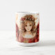Um anjo de aquarela em um vestido vermelho com asas vermelhas e flores em seu cabelo cobrir a frente desta caneca de Natal. Muito fofo e festivo!