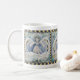 Um anjo caprichoso decora esta caneca num design de enrolamento. Estrelas e músicas são motivos repetidos que contribuem para o encanto. Um presente perfeito.
