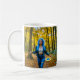 Uma garota legal com cabelo azul jogando um disco de golfe no bosque com a citação, "Apenas uma garota que ama jogar golfe no disco." Tudo pode ser editado nesta caneca. Se você quiser personalizá-la, você pode carregar sua própria foto e mudar o texto para dizer o que você quer. presente de excelente para a sua amiga de golfista de disco.