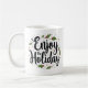 Escrito elegante caneca de café de Natal. O design apresenta o texto "Aproveite o feriado" em tipografia negra com estrelas pretas e elementos de destaque giratório. Faz o melhor presente personalizado para você, seus amigos, familiares e até mesmo vizinhos. Temos mais de 35 canecas de café de Natal na nossa coleção que vocês definitivamente vão amar. Por favor, dê uma olhada e ganhe o melhor presente de Natal com desejos especiais para suas pessoas especiais. Feliz Natal!