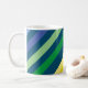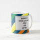 Uma caneca inspiradora sedada para manter como lembrete dos princípios de vida que você se importa. Como está, o texto, que você pode personalizar ainda mais, diz, "EMBRACE life, CRIA options, GROW, GIVE, { REPEAT }" Em um fundo de bandas diagonais coloridas.