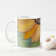 Aproveite seu café matinal com o calor da arte original. Este design de girassol é tirado da minha coloração d'água pintada à mão, com pétalas de ouro, folhas verdes moles e textura natural rica. Uma caneca acolhedora e alegre para cozinhas de fazenda, estilo cottagecore, ou qualquer um que ama girassóis. Faz um presente sazonal bem pensado para aniversários, Ação de Graças, ou uma surpresa justa.