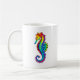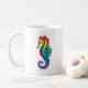 Articulação artificial, brilhante, arco-íris, cavalo de mar poligonal sobre fundo branco. Tatuagem brilhante.
