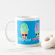 Um estilo de fundo azul giro mantenha o personagem de desenho animado da sorvete da casa da moeda legal slogan legal congelado sobremesa congelada tratado ícone do logotipo feliz estilo divertido congelado divertimento alegre diversão estética design do comida ilustrado deluxe deluxe café cerâmico chá ou caneca de cacau Pegue uma xícara de design de desenho épico hoje.