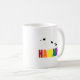 O nome do estado do Havaí em cores do arco-íris, junto com a forma das ilhas.