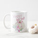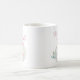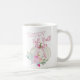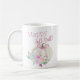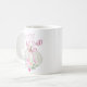 Arco rosa Pumpkin Happy Fall Y'all Coffee Mug com abóbora branca, arco rosa e folhas florais pastéis.