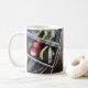 Fotografia de uma caixa aberta com lures, moscas e bobinas sobre uma doca impressa em ambos os lados da caneca. Cor, estilo e tamanho de mug são personalizáveis.