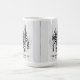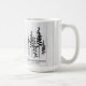 Esta caneca de café, festiva e acolhedora, apresenta uma silhueta de pinheiros pintada manualmente em madeira de falso caseiro branco com nome familiar e data de testa. Copyright Anastasia Surridge para o Compro de Natal, todos os direitos reservados.