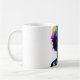 A caneca apresenta uma vibrante e multicoloração trabalho de arte de aquarela de uma linda menina negra com uma grande cor revestida de arco-íris. A beleza rica em melanina está vestindo óculos de sol e batom rosa. Pequeno efeito de decapagem e gotejamento nesta arte colorida estrelando uma mulher de pele castanha da diáspora africana.