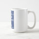 A caneca de café apresenta um gráfico de arte em metrô de sete das maiores cidades da Escócia em fontes azuis e brancas.