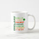 A caneca de café apresenta gráfico de estilo de metrô lista as principais cidades da Irlanda em várias fontes e cor do tema irlandês