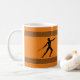 Uma caneca com um atleta se preparando para lançar um javelão representado no estilo Arte Grega com fronteiras, e palavras personalizáveis "Will matar for Café". Também disponível em outros designs! (1) Mug "Will Run for Coffee" e (2) Mug "Will Wrestle for Coffee"