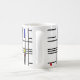 A caneca da arte moderna de Mondrian tem uma seção como a composição 10 por Pieter Piet Mondrian em vermelho, azul, amarelo, preto e branco, melhor saber do grupo do movimento de arte de de Stijl que usou três cores preliminares com linhas pretas em um fundo branco