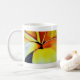 com design original de pintura aquosa feita pelo artista Sacha Grossel, de flor tropical Frangipani, grande, amarela e branca. Este design brilhante e vívido é inspirado pelo Verão, clima quente, feriados de praia e cultura de surf. Um motivo popular para amantes de flores botânicas florais e tropicais em todo lugar.